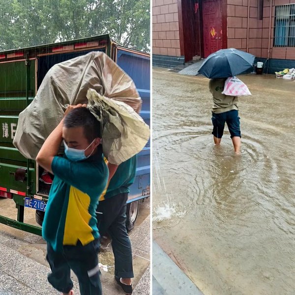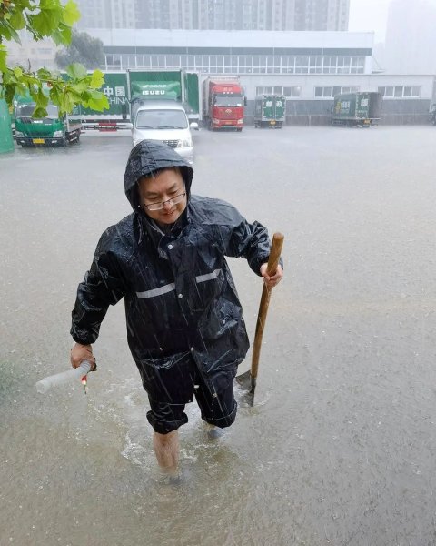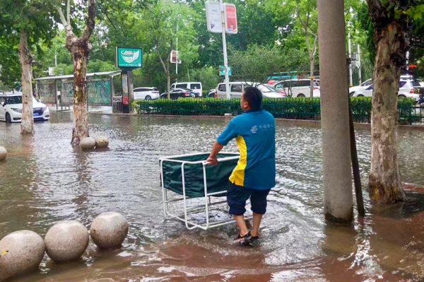近日,商丘遭遇了持續(xù)兩天的大暴雨,市區(qū)道路積水嚴重,給投遞工作帶來了困難。