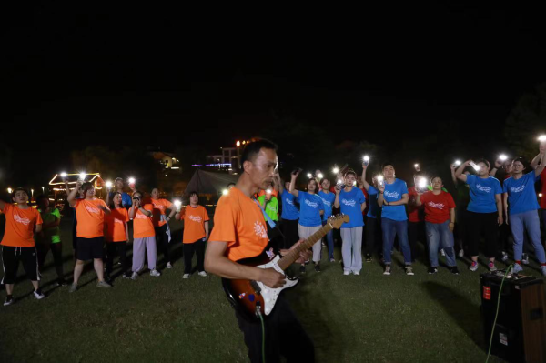 晚上7點30分,篝火晚會正式開始,大家齊聚草坪,市分公司副總經(jīng)理、工會主席張宏茂手握火把,點燃象征陽光心態(tài)的熊熊篝火,并宣布篝火晚會正式開始。隨后,主持人帶領(lǐng)大家圍成一圈做游戲,隊員們在游戲過程中充分享受到了團隊合作的樂趣。晚會上,最驚喜的莫過于四支隊伍的才藝表演,四分隊薛惠俊舞蹈《只此青綠》為大家呈現(xiàn)了“每一幀都是圖畫”的舞蹈魅力,還有個人塤獨奏,電吉它演奏……最后一首《朋友》,引起了大家的共鳴,大家用深情的歌聲唱出了常州郵政的團結(jié)和友愛,歌聲表達出常州郵政人最誠摯、真實的情感,將整場晚會的氣氛推向了高潮。