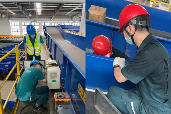 設(shè)備維護(hù)班技術(shù)人員檢修分揀設(shè)備