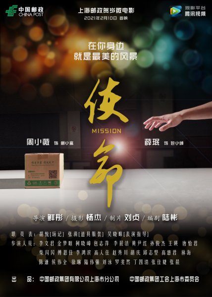 和以往上海郵政出品的微電影作品相同的是,《使命》由本單位員工自編、自導(dǎo)、自演、自拍,從導(dǎo)演、攝像、編劇到制片、劇務(wù)、化妝,直至所有的參演演員,全部由上海郵政員工自行擔(dān)任。通過反映當(dāng)代郵政人的工作日常,以小見大、以微見著,展現(xiàn)郵政員工當(dāng)家做主的主人翁精神、與時(shí)俱進(jìn)的服務(wù)方式和“為人民服務(wù)”的理想信念,凸顯郵政“國家隊(duì)”的職責(zé)與擔(dān)當(dāng)。