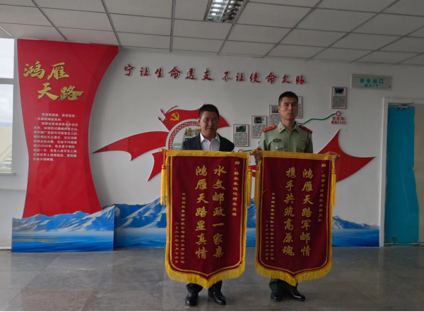 最后,劉煒副總經(jīng)理代表格爾木市分公司黨委為武警青??傟?duì)第二支隊(duì)、青海省水文水資源測(cè)報(bào)中心送上錦旗,感謝一直以來(lái)的大力支持。