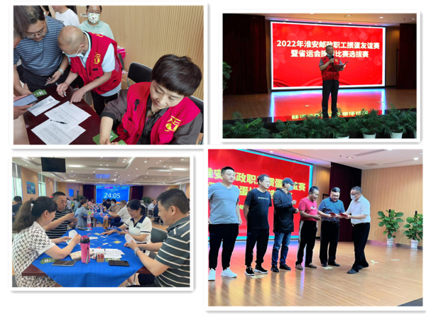 江蘇省第二十屆運(yùn)動(dòng)會(huì)職工部摜蛋比賽將于8月11日至14日在淮安市舉行,為積極響應(yīng)江蘇省總工會(huì)號(hào)召,營(yíng)造賽事活動(dòng)氛圍,輸送優(yōu)秀選手參加比賽,7月23日,淮安郵政工會(huì)在全區(qū)郵政系統(tǒng)舉行省運(yùn)會(huì)摜蛋比賽選拔賽,共有92名選手參加活動(dòng)。
