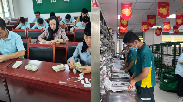 此次比賽項目有郵件打包、報紙粗分、點鈔三個項目,比賽選舉評委2名,投遞員分成兩組,每組三人,金融分成一組每組兩人分別進行以上項目。比賽前由主持人對此次比賽規(guī)則、評分標準、獎勵等進行講解,各位參賽者蓄勢待發(fā),比賽開始大家紛紛迅速進入比賽狀態(tài),各顯身手。比賽結束,分別選取前三名,并由工會負責人為獲勝者及參與者頒獎以資鼓勵。