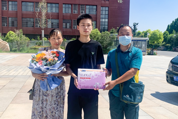 7月19日上午9點(diǎn),上蔡縣郵政分公司投遞員徐會(huì)超懷著激動(dòng)的心情來(lái)到上蔡縣第一高級(jí)中學(xué),鄭重地把當(dāng)?shù)厥着迦A和北大的錄取通知書(shū)送到景子洋、王寧?kù)o等7位學(xué)子手中。上蔡郵政還為7位學(xué)子精心準(zhǔn)備了鮮花和拉桿箱,向他們送去了郵政真摯的祝福。