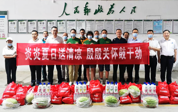 分公司領(lǐng)導(dǎo)班子成員分四個(gè)小組,分別帶領(lǐng)慰問小組,分片區(qū)深入縣市(區(qū))支局、投遞站(郵件轉(zhuǎn)運(yùn)中心)等基層單位,為工作在高溫酷暑一線的廣大員工送去了西瓜、綠豆、冰紅茶、風(fēng)油精、藿香正氣水等防暑降溫物資,送上市分公司黨委的親切關(guān)懷和夏日清涼。