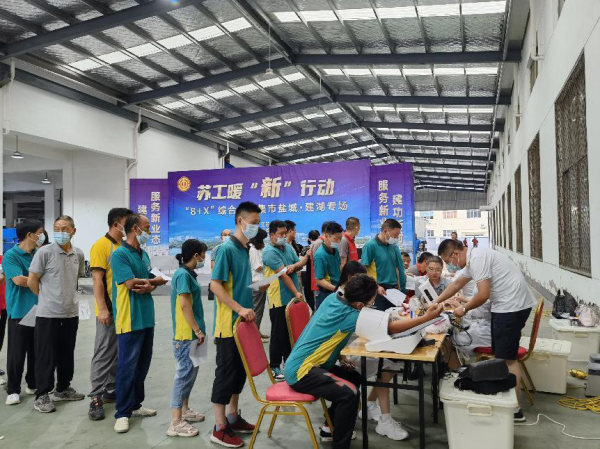 “集市”現(xiàn)場,在江蘇省總工會設(shè)立的“流動體檢車”中,三級工會約請的10多名專科醫(yī)生現(xiàn)場為新就業(yè)形態(tài)勞動者義診。而在法律服務(wù)工作區(qū)、心理咨詢工作區(qū)、專項保險工作區(qū)、困難幫扶工作區(qū)、求職就業(yè)政策指導(dǎo)區(qū)、安康“三送”暖“新”禮包發(fā)放領(lǐng)取區(qū)也都有相應(yīng)的工作人員接待新就業(yè)形態(tài)勞動者的各種咨詢服務(wù)。