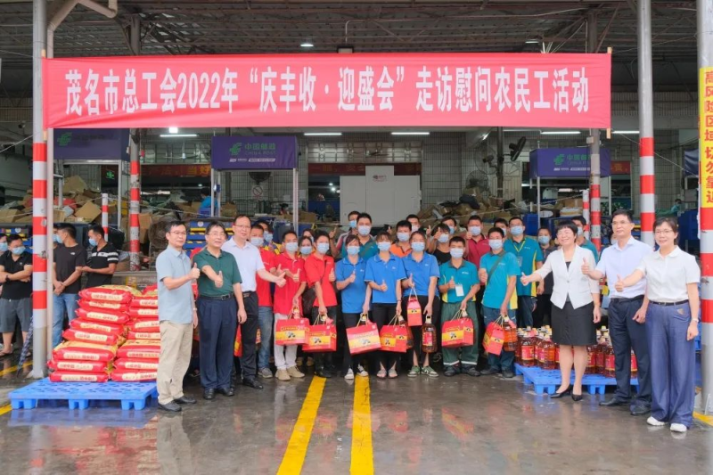 9月30日,茂名市總工會(huì)以“慶豐收·迎盛會(huì)”為主題,深入茂名市分公司開展走訪慰問快遞企業(yè)農(nóng)民工活動(dòng)。市總工會(huì)、市郵政管理局、茂名市分公司聯(lián)合慰問小組冒雨為農(nóng)民工快遞員(農(nóng)村戶籍外包攬投人員)送上米、油、面等一批慰問品。