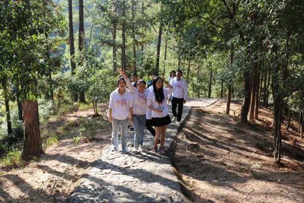 一路上,歡聲笑語在團隊間蕩漾,大家相互加油,彼此照應(yīng),團結(jié)友愛,不斷克服登山時身體的疲勞,盡情釋放工作中的壓力。