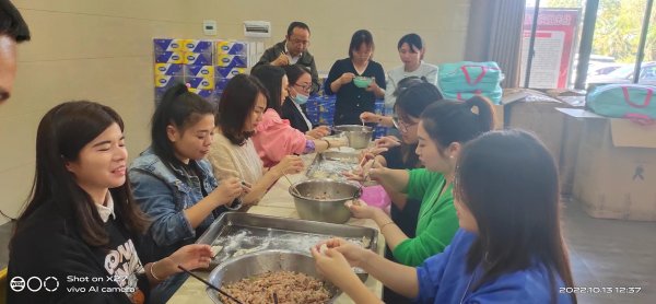 首先是包餃子,機(jī)關(guān)同事利用午休時(shí)間包好餃子,大家分工協(xié)作,配合默契,紛紛使出看家本領(lǐng),剁餡、揉餡、包餃子、上盤……大家表情專注、動(dòng)作嫻熟,場(chǎng)面充滿了濃濃的溫馨氣氛。