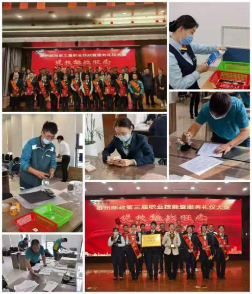 在郵政業(yè)務(wù)旺季來臨之際,由泰州市總工會、人力資源和社會保障局、團市委、郵政管理局和泰州市郵政分公司聯(lián)合舉辦的第三屆職業(yè)技能暨服務(wù)禮儀大賽在泰州郵政指揮中心舉行。全市郵政1600多人參加,涵蓋了營業(yè)、儲蓄、理財、攬收、投遞五大工種,以及支局長、營投部經(jīng)理、視察檢查等前后臺管理人員,經(jīng)過層層選拔,最終產(chǎn)生50人、共5支參賽隊于11月1日展開決賽。