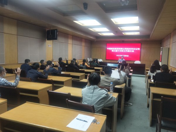 11月8日下午,江西省撫州市分公司召開第三屆十次職工代表大會。會議應(yīng)到代表59人,因病因事請假 3人,實到代表56 人,符合開會規(guī)定人數(shù),市分公司黨委委員、副總經(jīng)理、工會主席李捷平主持會議。