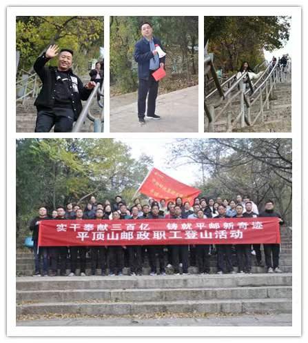 11月16日上午,平頂山市郵政工會開展“實干奉獻三百億·鑄就平郵新奇跡”職工登山活動,登山觀景,鍛煉身體,放松心情。