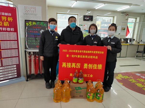 為了讓獲獎(jiǎng)網(wǎng)點(diǎn)盡快收到獎(jiǎng)品,起到鼓舞士氣和激勵(lì)職工的作用,28日下午,牡丹江市郵政工會冒雪對月牙湖營業(yè)所和樺林營業(yè)所進(jìn)行了慰問。