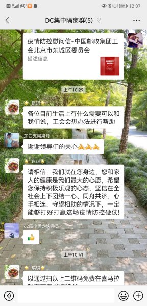 東城區(qū)分公司工會(huì)針對(duì)集中隔離職工,“一對(duì)一”進(jìn)行電話慰問和心理疏導(dǎo),了解生活情況,給隔離職工家庭寄去慰問信和愛心蔬菜包。西城區(qū)分公司工會(huì)儲(chǔ)備包含牛奶、方便面、鹵蛋、餅干等食品的供給物資各200箱,并啟動(dòng)分批次發(fā)放方案,支援各支局網(wǎng)點(diǎn)在崗職工,確保一線職工的飲食供應(yīng)。朝陽(yáng)區(qū)分公司工會(huì)多方聯(lián)系,購(gòu)置6750袋防疫代茶飲、100盒連花清瘟膠囊和維生素C等藥品,配發(fā)到各部門工會(huì),為職工健康保駕護(hù)航。海淀區(qū)分公司工會(huì)為使用中央空調(diào)供暖的網(wǎng)點(diǎn)職工購(gòu)買了暖水袋保暖。豐臺(tái)區(qū)分公司工會(huì)堅(jiān)在線上職工小家-----“郵小豐”微信群預(yù)約心理咨詢機(jī)構(gòu)老師,開通職工心理援助通道,每天分享防疫小知識(shí),堅(jiān)定職工抗疫信心和決心。房山區(qū)分公司工會(huì)購(gòu)買方便面、火腿腸等加餐食品,組織食堂為投遞等外勤人員制作愛心盒飯,保障堅(jiān)守一線職工吃上熱乎飯,讓職工在疫情反復(fù)的困難條件下有溫暖、有底氣,共克時(shí)艱。通州區(qū)分公司工會(huì)根據(jù)部分街鄉(xiāng)封控政策不斷調(diào)整慰問方案,為基層網(wǎng)點(diǎn)增配消毒液、洗手液等防疫用品,為基層營(yíng)業(yè)部配送折疊床、被褥等生活用品。平谷區(qū)分公司工會(huì)為同城郵運(yùn)司機(jī)布置休息宿舍,確保外區(qū)回來人員閉環(huán)管理。郵區(qū)中心工會(huì)為封控區(qū)過生日的職工送去生日蛋糕、長(zhǎng)壽面和祝福,企業(yè)的關(guān)心關(guān)愛。 發(fā)行中心在做好疫情防控基礎(chǔ)上,組織閉環(huán)場(chǎng)地職工適當(dāng)開展跳繩、踢毽等體育活動(dòng),保障職工身心健康。(北京郵政工會(huì))