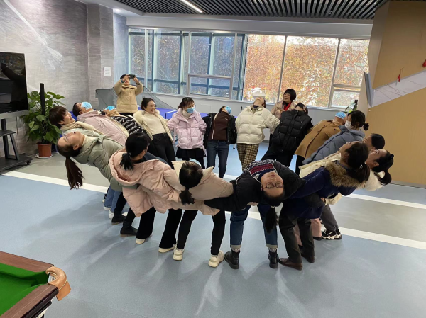 活動(dòng)現(xiàn)場(chǎng),老師先是給大家娓娓講述一些克服壓力舒緩情緒的方法,后又指導(dǎo)大家做了幾項(xiàng)游戲,通過(guò)“抓與逃”的開場(chǎng)熱身游戲,讓職工放松身心,接下來(lái)通過(guò)“桃花朵朵開”的心理游戲,讓職工們?cè)诰o張的氣氛中迅速打開身心狀態(tài),投入其中。通過(guò)“心有千千結(jié)”讓職工感受團(tuán)隊(duì)的協(xié)作和配合的力量,認(rèn)識(shí)到齊心協(xié)力才能達(dá)成共同目標(biāo)。又通過(guò)“信任倒”的心理游戲,讓職工在團(tuán)隊(duì)中感受被隊(duì)友們支持、保護(hù)、安全的積極體驗(yàn),增進(jìn)職工的集體歸屬感、安全感,提升團(tuán)隊(duì)的凝聚力和戰(zhàn)斗力。最后通過(guò)“不倒森林”的團(tuán)隊(duì)合作,讓職工在過(guò)程中體驗(yàn)自己在實(shí)現(xiàn)團(tuán)隊(duì)目標(biāo)時(shí)的重要性。