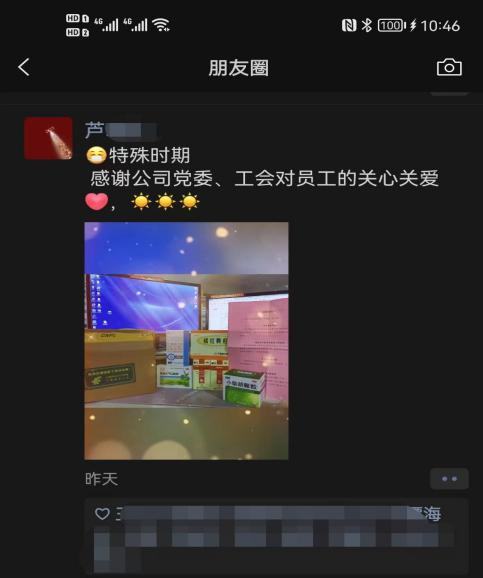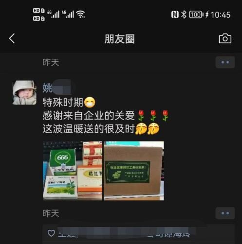 收到防疫健康包的廣大職工紛紛在朋友圈曬圖,“企業(yè)的關(guān)愛始終如一,工會的溫暖永在身邊”、“特殊時期來自工會的關(guān)愛,這波溫暖送的很及時”!“手中有糧,心中不慌”感恩感謝來自區(qū)分公司黨委、區(qū)郵政工會細至入微的關(guān)愛。