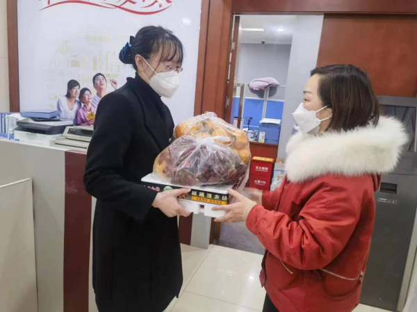 “伙伴們辛苦了,疫情期間大家一定注意安全!多喝熱水,多補(bǔ)充維C……”。12月16日,李市支局工會(huì)小組長慕琳琳帶著新鮮采買的各式水果和口罩等防疫物資送到網(wǎng)點(diǎn),對(duì)員工親切慰問。