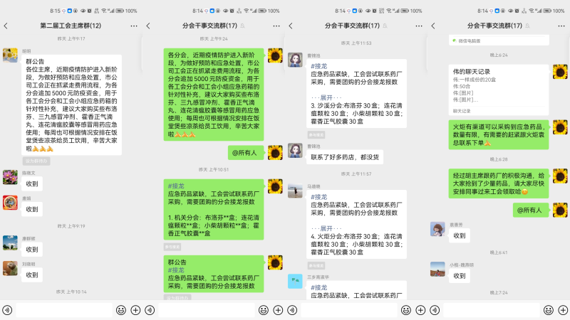 采購(gòu)防疫應(yīng)急藥品是近日工會(huì)工作群里最熱門的話題。面對(duì)應(yīng)急藥品緊缺的難題,各級(jí)行政、工會(huì)想方設(shè)法,積極聯(lián)系藥廠、藥店,齊心協(xié)力解決問題。