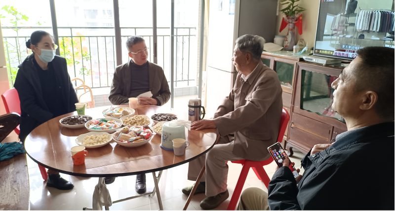 孫老一家熱情歡迎了工會(huì)慰問小組,并準(zhǔn)備瓜子、花生和餅干等零食迎接大家。因知曉孫老的聽力不佳,工會(huì)主席方一平同志俯身至孫老耳邊關(guān)心詢問他的身體健康狀況和日常生活情況,囑咐孫老一定要保重身體,并代表信源集團(tuán)向離休老同志致以誠摯慰問和崇高敬意,他表示,離休老同志也是信源集團(tuán)的一份子,企業(yè)的發(fā)展成果離不開他們當(dāng)初的拼搏奮斗和無私奉獻(xiàn),大家應(yīng)全心全意做好老同志服務(wù)保障工作,傾聽他們的心聲和期望,讓老同志隨時(shí)隨地都能感受到信源大家庭的溫暖和關(guān)懷。
