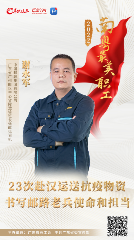 2021年,謝永軍獲得了廣東省五一勞動獎?wù)隆!澳軌颢@得廣東省五一勞動獎?wù)?,我感到無比高興和榮幸。這也將以更大的熱情投身為郵政服務(wù)工作,爭取更大的成績?!彼f。