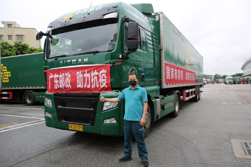 在一趟趟緊急防疫物資爭分奪秒的運(yùn)輸中,在一件件承載著期盼與溫暖的郵件安全送達(dá)中,謝永軍一次又一次往返廣州與武漢之間,用實際行動踐行著郵路老兵的使命和擔(dān)當(dāng)。