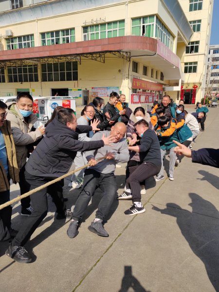 比賽采取兩兩對(duì)抗,勝出兩隊(duì)最后爭(zhēng)奪冠亞軍。第一輪是寄遞對(duì)渝水,隨著裁判“嘟”的一聲哨響,雙方都卯足了勁往后拉,因?yàn)殡p方實(shí)力懸殊,最終寄遞隊(duì)輕松獲勝了。第二輪是機(jī)關(guān)對(duì)分宜,雙方都提前做好了準(zhǔn)備工作,身體全部往后仰,緊緊的拉著繩子,只聽(tīng)哨聲一響,中心的紅絲帶朝著機(jī)關(guān)隊(duì)移動(dòng),站在兩側(cè)的啦啦隊(duì)員們高聲吶喊“加油”助威,聽(tīng)到吶喊聲,機(jī)關(guān)隊(duì)的隊(duì)員們備受鼓舞,一鼓作氣贏了對(duì)方。休息片刻后,最激烈的第三輪開(kāi)始了,機(jī)關(guān)隊(duì)和寄遞隊(duì)比賽開(kāi)始后,紅絲帶一會(huì)兒朝著寄遞隊(duì)移動(dòng),一會(huì)兒又朝著機(jī)關(guān)隊(duì)移動(dòng),兩邊的啦啦隊(duì)都在相繼喊著“加油!加油!”吶喊聲此起彼伏,震耳欲聾。前兩局雙方各勝一局,最終還是寄遞隊(duì)獲得了冠軍。