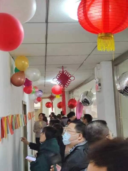 工會充分利用走廊過道的優(yōu)勢,布置了現(xiàn)場,近兩百條的五彩謎條隨風(fēng)飄揚(yáng),營造了良好的節(jié)日氛圍。活動一開始便吸引了大批職工前來參與,大家駐足在燈謎前絞盡腦汁思考著答案。活動現(xiàn)場不時的還能聽見為猜出答案而歡呼雀躍的聲音。職工們穿梭其間,流連忘返,構(gòu)成了一道獨(dú)特的風(fēng)景畫。