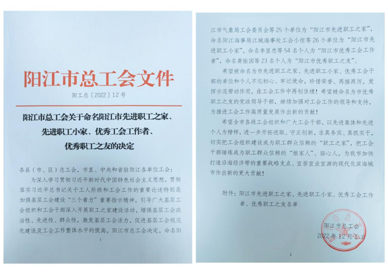 日前,陽江市總工會印發(fā)了《陽江市總工會關于命名陽江市先進職工之家、先進職工小家、市優(yōu)秀工會工作者、優(yōu)秀職工之友的決定》,陽江市分公司陽東塘坪、陽春春灣、陽西新圩等3個支局工會小組榮獲“陽江市先進職工小家”,陽江市分公司黨委書記、總經(jīng)理馬志雄,陽東區(qū)分公司黨委書記、總經(jīng)理曾春意等2名同志榮獲“陽江市優(yōu)秀職工之友”稱號,工會譚慶蕊榮獲“陽江市優(yōu)秀工會工作者”稱號。