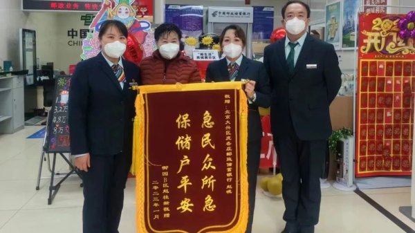 為向支行工作人員表示感謝,趙阿姨為龐各莊支行全體員工送上錦旗,為郵政人熱心周到服務(wù)點(diǎn)贊?!耙f靠譜還得是郵政?!倍潭痰囊痪湓捠菍︵]政人莫大的鼓舞,在以后的工作中,龐各莊支行將繼續(xù)秉承“人民郵政為人民”的初心,堅(jiān)持服務(wù)好每一位用戶?。ū本┼]政工會)