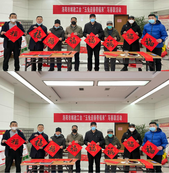 為弘揚(yáng)中華民族傳統(tǒng)節(jié)日,在新春來臨之際,營造濃厚的節(jié)日氛圍,豐富職工的精神文化生活。2023年 1月16日上午,洛陽郵政工會(huì)在市公司一樓大廳組織職工開展了“玉兔迎春帶福來”寫春聯(lián)、送“福”字活動(dòng)。