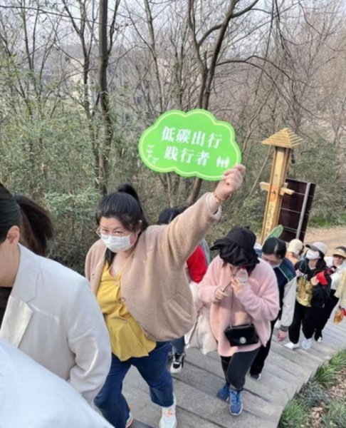 “低碳出行踐行者”“綠色生活推動者”,一塊塊響亮的標語牌,宛如一條綠色的絲帶,將登山的女神們像珍珠一般串聯(lián)起來,形成了一幅精致和諧、生機盎然的美好畫面。