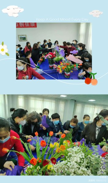 在花藝師的精心指導(dǎo)下,百合花、勿忘我、紅玫瑰、康乃馨等鮮花,經(jīng)過(guò)女職工們精心巧妙的構(gòu)思、修剪、整枝和裝飾,變成了一件件精美的藝術(shù)品,充滿詩(shī)情畫意。這一活動(dòng),讓大家在細(xì)碎的時(shí)光研磨中品味生活的明媚與浪漫。
