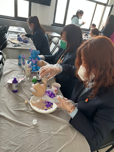 在指導(dǎo)老師的帶領(lǐng)下,參與的女職工們先挑選出自己喜歡的顏色后積極動(dòng)手操作,利用自己靈巧的雙手、豐富的創(chuàng)意親自設(shè)計(jì)、擺放并染色制作出一只只屬于自己可愛(ài)小熊?;顒?dòng)完畢后,大家紛紛舉著自己的作品進(jìn)行拍照留念,共同分享DIY小熊的體會(huì)和收獲的喜悅,在一只只色彩斑斕小熊的襯托下更凸顯女性同胞柔美、可愛(ài)的獨(dú)特氣質(zhì)。