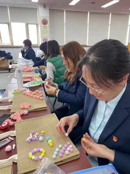 座談會(huì)后,又組織女工代表們 “靚麗巾幗 巧手拼貼”DIY麻布包,選取各色毛絨球、小玩偶等繡拼成畫,在麻布包上隨意組合,粘貼出自己中意的圖案。經(jīng)過(guò)大家的精心制作,一只只做工精美、賞心悅目的DIY麻布包呈現(xiàn)在大家的面前,有白雪公主造型系列,有可愛(ài)的動(dòng)物造型系列,有花草水果系列,有創(chuàng)意組合系列……每個(gè)包包都是色彩艷麗、栩栩如生、獨(dú)一無(wú)二的,讓大家愛(ài)不釋手。(北京郵政工會(huì))