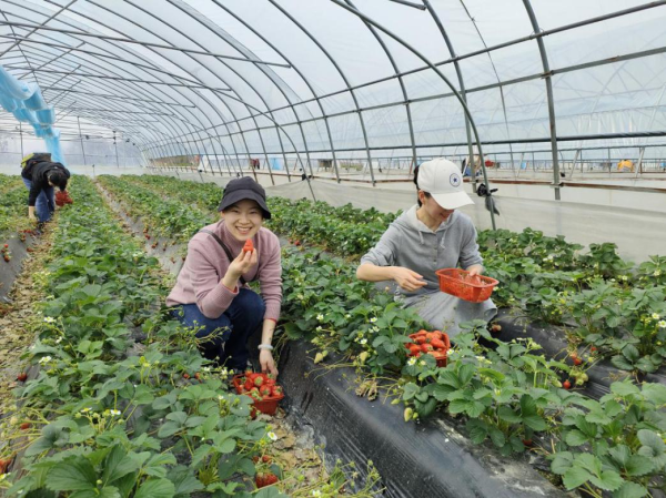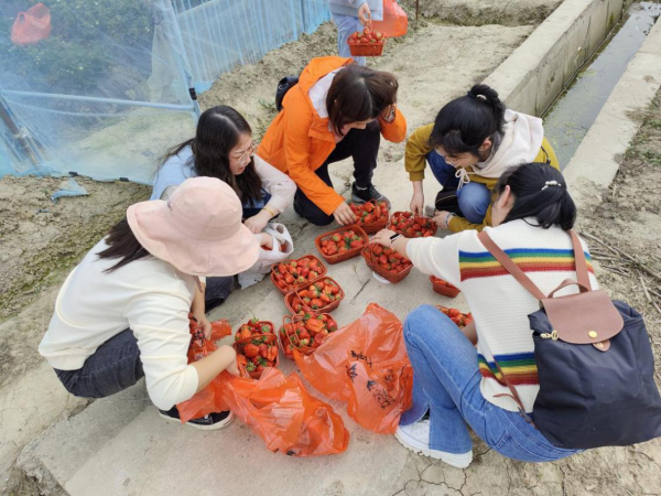 動(dòng)結(jié)合郵政惠農(nóng)活動(dòng),特意選在南陵縣黃墓村黨組織領(lǐng)辦合作社的草莓大棚舉行。3月8日下午1點(diǎn),郵政巾幗們準(zhǔn)時(shí)出發(fā),踏上快樂(lè)采摘之旅。一踏入草莓大棚,清新的草莓果香撲鼻而來(lái),一派清新的田園氣息,放眼望去,鮮紅欲滴的草莓果實(shí)在一壟壟碧綠的草莓秧中若隱若現(xiàn),紅綠交映,一片生機(jī)勃勃。大家手提小果籃,沿著整齊的草莓田,化身快樂(lè)的小果農(nóng),一邊采摘品嘗,一邊相互交流,氣氛輕松活潑,體驗(yàn)著采摘草莓、品嘗鮮果的樂(lè)趣,現(xiàn)場(chǎng)快樂(lè)與熱情四溢。經(jīng)過(guò)一個(gè)多小時(shí)的采摘后,大家都有了豐碩的成果,每個(gè)人的臉上充滿(mǎn)著幸福的笑容和活力。