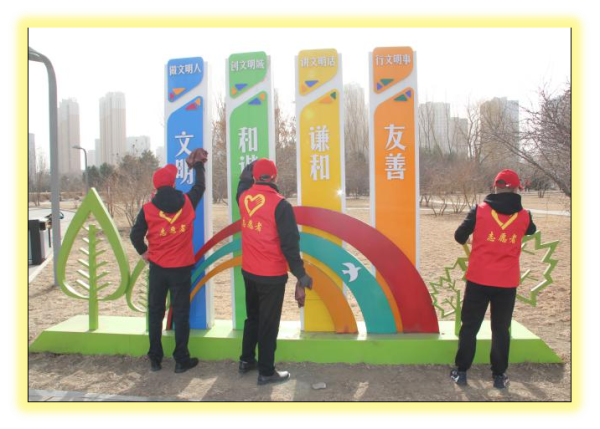 活動中,志愿者們身穿紅馬甲,手拿抹布、夾子、垃圾袋,認(rèn)真擦拭園內(nèi)長椅、愛國主義教育景觀等公共設(shè)施,將塑料袋、礦泉水瓶、煙蒂、紙屑等垃圾進(jìn)行分類撿拾與清理,向游玩的游客講解保護(hù)綠色環(huán)境、共建綠色家園的生活理念,以實(shí)際行動傳遞文明正能量,深入踐行“我為群眾辦實(shí)事”的初心使命。