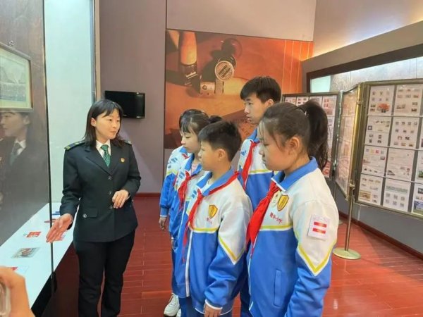 天津郵政博物館中陳列著中國郵政于2022年10月16日發(fā)行的《中國共產(chǎn)黨第二十次全國代表大會》紀念郵票2枚——“奮進新征程”、“建功新時代”,小型張1枚。劉婷耐心講解著三枚郵票背后的故事,小學生們認真聆聽,了解了郵票設計中所包含的黨的二十大的深刻含義。期間,劉婷還以問答的形式與小學生們互動,激發(fā)著孩子們的學習熱情,同時也把為實現(xiàn)中華民族偉大復興而努力學習的使命感的種子深深地種在了孩子們的心里。在沉浸式體驗中,同學們駐足在劉婷捐贈的參加黨的二十大盛會紀念品前,劉婷一一解釋著這些代表牌的作用,通過實物講解把大家?guī)肓舜髸f重的現(xiàn)場氛圍中。劉婷還結(jié)合基層投遞工作感悟,介紹了她如何在學習、生活中貫徹黨的二十大精神。聽了劉婷的講解和事跡,耀華小學的同學們深深感受到中國共產(chǎn)黨的偉大,體會到現(xiàn)在幸福生活來之不易,樹立起了為實現(xiàn)中華民族偉大復興爭做新時代好少年的信念。