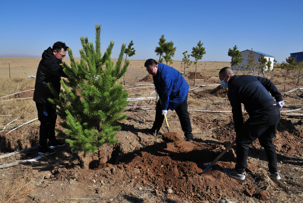 在植樹活動(dòng)現(xiàn)場,大家發(fā)揚(yáng)不怕苦、不怕累的奮斗精神和協(xié)作互助的團(tuán)隊(duì)精神,3人一組,分工協(xié)作,揮鍬鏟土,扶正苗木,踩土定植,培土圍堰,澆水筑根,熟練認(rèn)真地完成每一道工序,錯(cuò)落有致地栽下一株株樹苗,為春日的錫林浩特市增添了一抹新綠,盡顯盎然生機(jī)。
