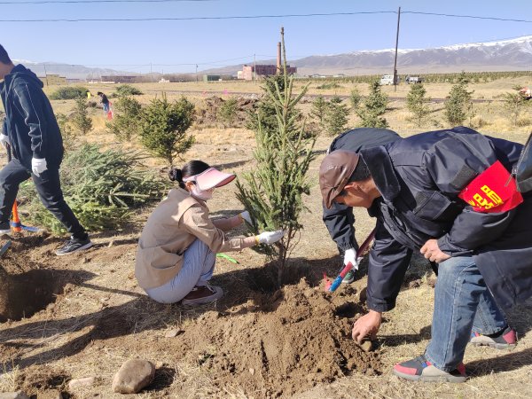 挖坑刨土、揮鍬填坑、澆水定根……4月26日,在海晏西海鎮(zhèn)二分廠段,海北郵政組織15名干部職工參加義務植樹造林活動。