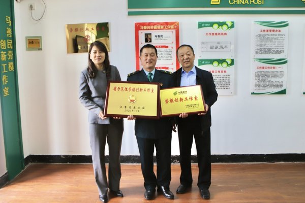 4月25日下午,江蘇省郵政工會副主席王軍一行來到連云港錦屏支局,與馬善民親切交談,為馬善民勞模創(chuàng)新工作室頒發(fā)江蘇省總工會授予的“省示范性勞模創(chuàng)新工作室”、中國郵政集團(tuán)有限公司授予的“勞模創(chuàng)新工作室”獎(jiǎng)牌,并代表省郵政工會向馬善民勞模創(chuàng)新工作室取得的榮譽(yù)表示熱烈祝賀。