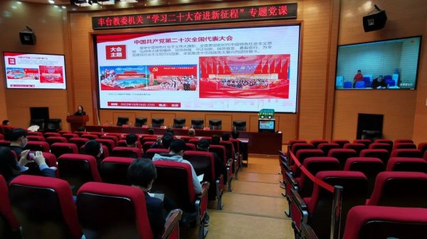 除現(xiàn)場(chǎng)宣講外,豐臺(tái)郵政與豐臺(tái)教委開展的“學(xué)習(xí)二十大 奮進(jìn)新征程”專題黨課也以“線上線下”連線的形式擴(kuò)大了觀眾覆蓋面及活動(dòng)影響力。不僅區(qū)教委機(jī)關(guān)黨員及工會(huì)干部共五十余人在報(bào)告廳現(xiàn)場(chǎng)聽課,還有一百多所中小學(xué)及幼兒園的工會(huì)干部通過線上會(huì)議共同體驗(yàn)集郵文化帶來的獨(dú)特魅力。