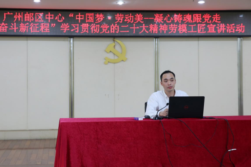 為營造“學習勞模、關愛勞模、崇尚勞模、爭當勞?!钡牧己梅諊龑訌V大員工愛崗敬業(yè),主動增強企業(yè)主人翁精神,廣州郵區(qū)中心組織開展了“中國夢·勞動美——凝心鑄魂跟黨走 團結奮斗新征程”勞模工匠宣講活動,讓勞模走上講臺,分享成長歷程。