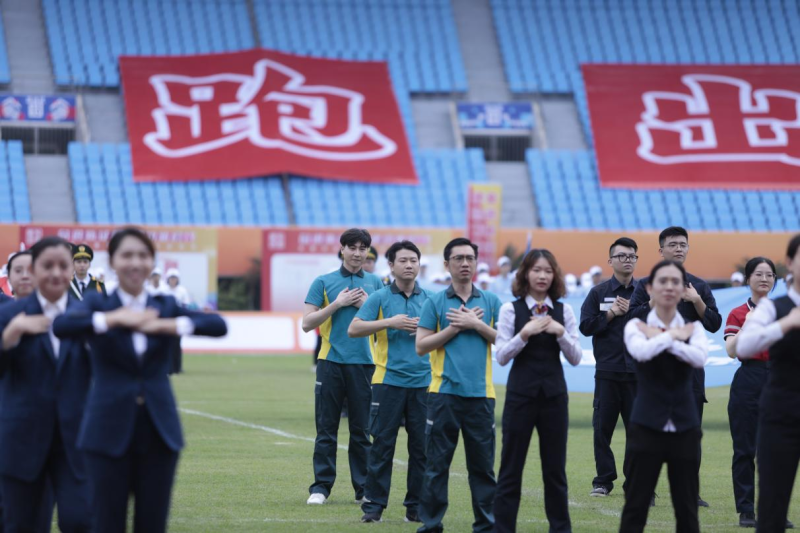 開幕式上燃料煙花瞬間綻放,運動會在現(xiàn)場一片歡呼聲中正式拉開帷幕。來自各企業(yè)的員工代表為現(xiàn)場觀眾送上了絕美的視聽盛宴:朝氣與活力的快閃舞蹈《我們都是追夢人》、驚心動魄的是軍體拳《國資雄風》、極具特色的企業(yè)風采展示《出發(fā)吧!春天》……整場文藝匯演精彩紛呈,高潮迭起。東莞市分公司員工代表為了這次開幕表演,常常利用下班時間集中排練,“能參與到燃爆全場的開幕式表演中,我們覺得付出的一切都很值得!”