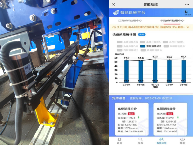 在日常管理過程中,處理中心值班人員利用SCADA系統(tǒng)和智能運維平臺發(fā)現(xiàn)設(shè)備效能指標(biāo)異常,及時溝通反饋。一線接發(fā)人員通過信息系統(tǒng)查看在途和進(jìn)局車輛的主要流量流向、郵件規(guī)格、集包情況、貴品等信息,合理安排卸車垛口。汪磊提出通過分析無物理格口、無信息、未半圈落格郵件主要路向,定期反饋給業(yè)務(wù)部門完善分揀方案、現(xiàn)場管控等相關(guān)建議,實現(xiàn)了業(yè)技深度融合、齊抓共管的良性循環(huán),設(shè)備開機時間時長平均壓縮4.25小時,減少了設(shè)備磨損,件均電費下降20%。
