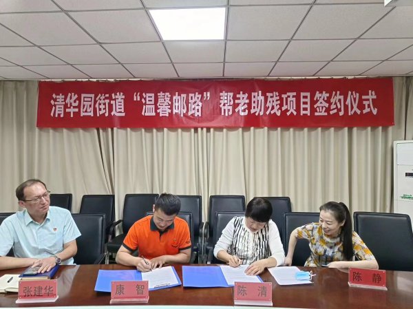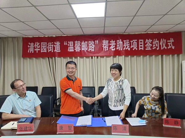5月25日,海淀區(qū)分公司清華大學郵政支局與清華園街道殘聯(lián)共同簽署了“溫馨郵路”合作協(xié)議,清華園街道黨工委書記許立冬、副主任方仲奇、殘聯(lián)理事長陳清、清華大學郵政支局局長張建華、勞模創(chuàng)新工作室?guī)ь^人康智,共同參加了簽約儀式。