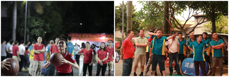 參與活動(dòng)的員工在快樂(lè)投籃、快樂(lè)射箭、快樂(lè)乒乓球接力三個(gè)項(xiàng)目中激烈比拼,每支參賽隊(duì)伍都有備而來(lái),斗志昂揚(yáng)。隨著籃球“嗖”一下應(yīng)聲入筐,現(xiàn)場(chǎng)時(shí)而歡笑雷動(dòng),時(shí)而掌聲熱烈,時(shí)而驚呼嗟嘆;射箭區(qū)同樣也是一片火熱,選手們屏住呼吸、凝神定氣,搭箭、瞄準(zhǔn)、扣弦、開(kāi)弓……切磋技藝,一一展示自己的技術(shù);乒乓球接力賽則考驗(yàn)著參賽隊(duì)伍的團(tuán)結(jié)協(xié)作能力,乒乓球滾落、對(duì)接失敗、以手碰球重回起點(diǎn)等狀況都沒(méi)有打斷員工們高漲的興致,大家臉上仍舊掛著燦爛的笑容,現(xiàn)場(chǎng)觀眾也深受感染,笑聲不斷……員工們沉浸在一場(chǎng)場(chǎng)簡(jiǎn)單而用心的互動(dòng)游戲中。
