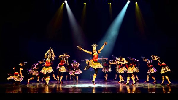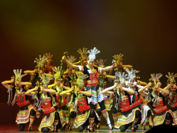 《吉祥畢茲卡》取材于恩施土家族八寶鈴舞,由陶婉琴、龔焰、蘭天文共同編導(dǎo)。該作品中,武漢郵政藝術(shù)團(tuán)的舞蹈演員們身著土家族的民族服飾,手持八寶銅鈴,伴隨著喜慶歡樂的音樂,通過模仿土老司法事活動(dòng)創(chuàng)編的舞蹈動(dòng)作,以女性可柔可剛的特點(diǎn),表達(dá)土家人如水般頑強(qiáng)和旺盛的生命力,以及骨子里的淳樸善良,相信萬物有靈,對(duì)天地和祖先的信仰,以祈愿一方水土安寧的美好愿景。