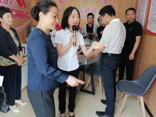 在調(diào)研現(xiàn)場,信州區(qū)郵政分公司副總經(jīng)理、工會(huì)主席俞夢詳細(xì)介紹了錦繡路“郵愛驛站”建設(shè)情況。該“郵愛驛站”是根據(jù)省、市總工會(huì)關(guān)于創(chuàng)建戶外職工愛心驛站的指導(dǎo)意見,設(shè)立在行政中心郵政所區(qū)域、用來解決好戶外勞動(dòng)者“四難”即“入廁難”“飲水難”“熱飯難”“休息難”等現(xiàn)實(shí)問題的服務(wù)場所?!班]愛驛站”按照“六個(gè)一”的標(biāo)準(zhǔn),配備了“一套桌椅、一臺(tái)微波爐、一臺(tái)飲水機(jī)、一套冷暖設(shè)備(空調(diào)、暖氣)、一臺(tái)冰箱、一個(gè)應(yīng)急藥箱(配備常用藥)”等設(shè)施,向環(huán)衛(wèi)工人、交警協(xié)警、快遞小哥、出租車司機(jī)、市政維修工等戶外勞動(dòng)者提供真摯暖心的便民服務(wù)。