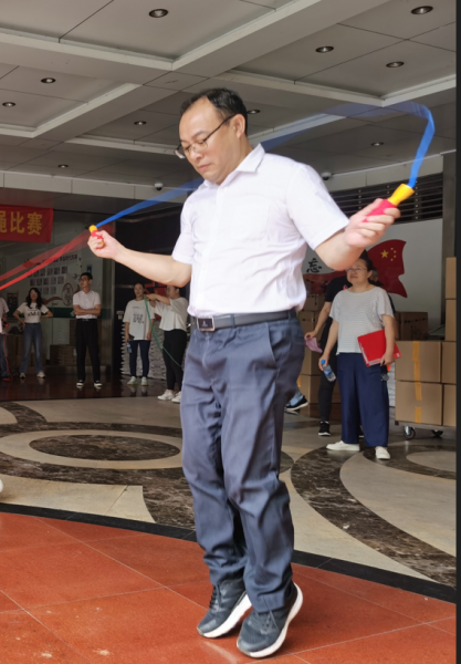 比賽現(xiàn)場熱鬧非凡、精彩紛呈,叫好聲、助威聲此起彼伏。員工們熱情高漲,全情投入,紛紛使出“看家本領(lǐng)”,訓(xùn)練有素的員工可謂身輕如燕,只見跳繩在手中上下翻飛,劃出一道道炫目的弧線,耳邊傳來的是跳繩劃過空氣發(fā)出“簌簌簌”的聲音;平時缺乏訓(xùn)練的員工跳得比較費力,跳繩還常常絆住腿腳,但他們不氣餒、不放棄,中斷了馬上重來,一直堅持到底。集體項目是“8字跳繩”,選手們隨著搖繩的節(jié)奏魚貫而過,不但眼疾腿快,還默契十足,比賽過程精彩而激烈,熱鬧的場面令人目不暇接,助威聲歡笑聲不斷。