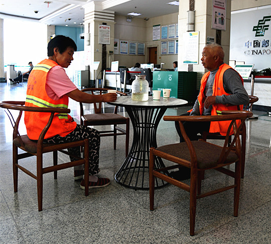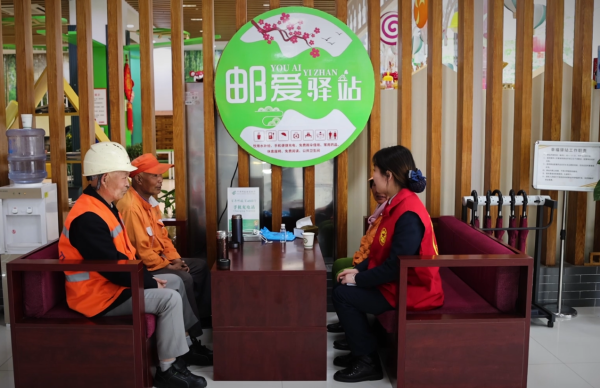 “平時起得早,遇到雨雪天,沒有地方待,幸好咱們郵政公司建了這個幸福驛站,對于我們這些環(huán)衛(wèi)工,不管熱天、冷天,都有關心和照顧,俺們表示感謝!”宿州市區(qū)淮海路的環(huán)衛(wèi)工人劉大姐一邊在驛站的茶歇處坐著休息,一邊和驛站的志愿服務人員聊著。
